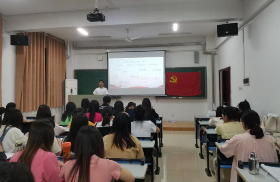 首先,支部书记汤顺鑫以“发挥党员先锋模范作用、打赢疫情防控狙击战”为主题,围绕青年党员如何在疫情防控工作发挥先锋模范作用,为学生党员上了一堂深入浅出的专题党课。他强调,在疫情大考中,党员同志应坚持以政治合格、执行纪侓合格、品德合格、发挥作用合格的要求严格要求自己。并希望大家发挥党员先锋模范作用,秉承疫情就是命令,为坚决打赢疫情防控阻击战努力奋斗。