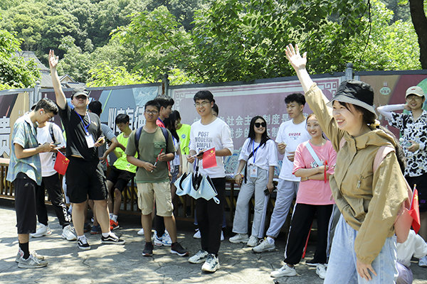 上午8:30,团建活动在成员的欢声笑语中正式拉开帷幕,骑行组成员不畏烈日的曝晒和路途的遥远,一路骑行至昭山。本次活动共分为四项,分别是“党史快问快答”、“一块五团结抱”、“听红歌识曲”、“登高忆先贤”。在“党史快问快答”游戏中,参与人员积极抢答,正确答案脱口而出,“中国共产党的第一任总书记是……”还未等主持人说完题目,便有人喊出陈独秀的名字,现场掌声不断。随后,金年官网社团部委员周妍在采访中激动地说道。“在党史问答的过程中,真正夯实了我的党史基础,并在思考中提高了个人的党性修养。"
