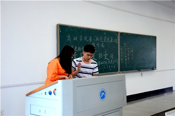 在下一个环节,来自人文社科体育学部的两位学生对《人民的名义》里的小官巨贪的经典片段进行了精彩的演绎,两位分别饰演反贪局局长侯亮平、贪污受贿的赵处长。他们就人物的台词进行了模仿对话,表情丰富,演绎的惟妙惟肖。“你大把大把捞黑钱的时候,怎么没想到自己是农民的儿子,中国农民那么倒霉,有你这么个坏儿子。”