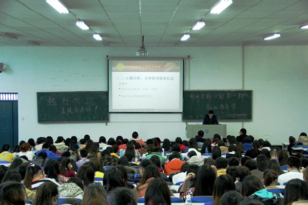 但紧接着,他就从如何搜集和合理利用就业信息,如何编写简历和遵守就业礼仪等方面向学生们“支招”。“就业成功的关键就是信息,信息就是机遇,抓住了信息也就把握住了成功”。他强调,找工作时要遵循“人职匹配”原则,要根据筛选出来的职业信息发现自己的不足,及时调整自己的知识结构。