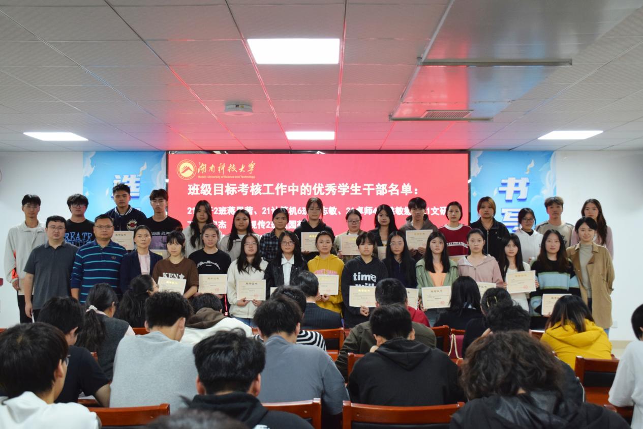 主持人宣读了获得湖南科技大学校级班级目标管理任务清单先进班集体称号的班级、学院班级目标管理任务清单的先进班集体及工作中表现突出的优秀学生干部获奖名单,并由叶军和部分老师代表为获奖班级和优秀学生干部颁发荣誉证书。