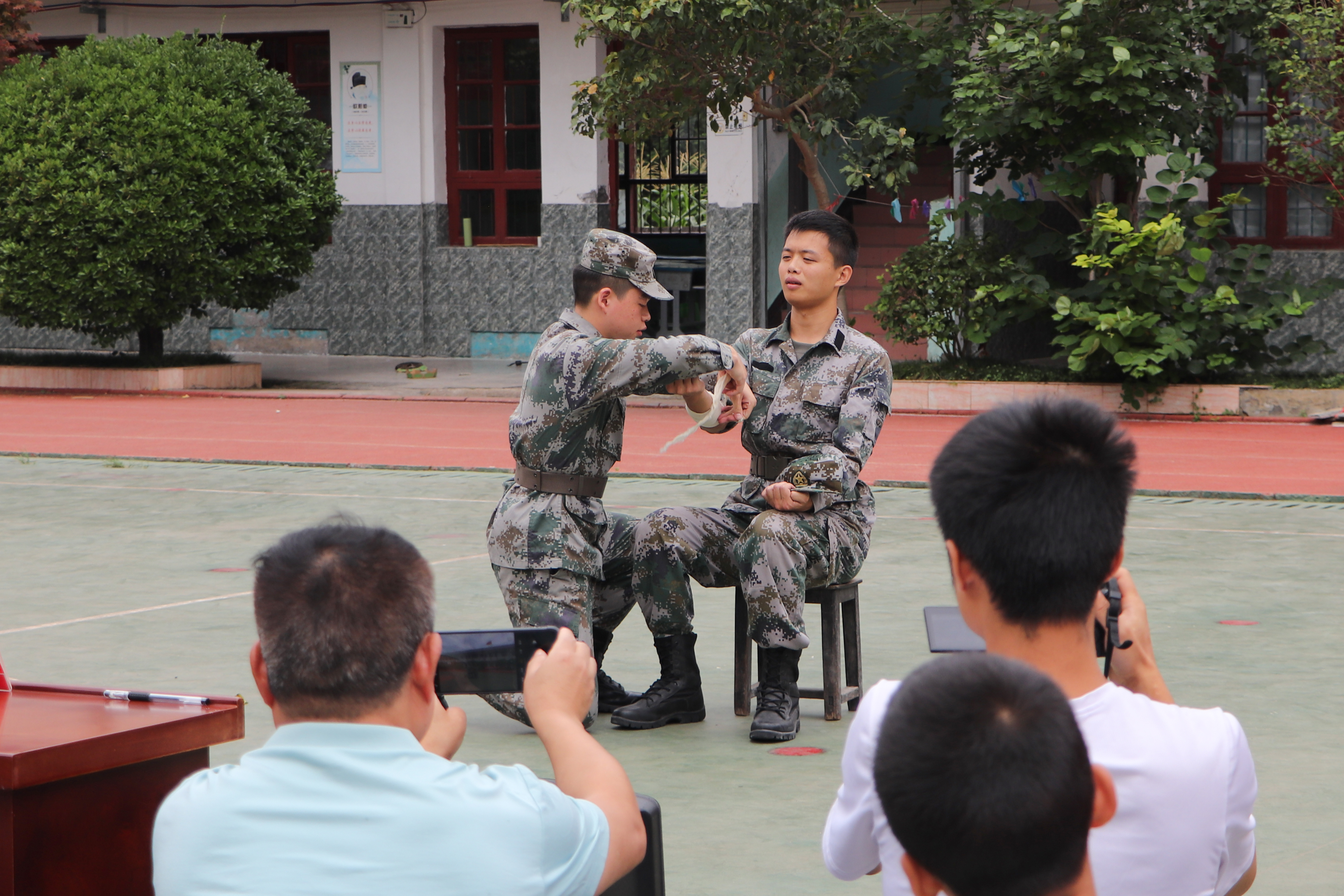 步伐铿锵显军人本色,专业过硬传实用真知。“立正、稍息、向右转……向后转……半面向左转、敬礼、礼毕。”学生们聚精会神地观看队列练习、满脸的崇拜和向往。退伍先锋队的队员们在队长曾创来的带领下,穿着一身笔挺的军装,昂首挺胸,英姿飒爽,踢着整理划一的正步,站军姿,则如泰山屹然不动;跑步走,则如蹄疾走日月,步稳可度关山。此外,退伍先锋队队员还为学生们生动的讲解和演示了灭火器的使用、应急救助包扎、**故中的自救方式三项应急救援技能,以增强学生自我保护及救援能力。整个过程,他们井然有序,动作如行云流水,为大山里的孩子们和当地村民展现了作为新时代中国军人的风采。