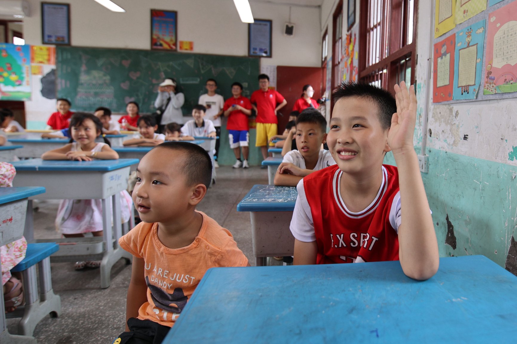 夏日白昼于湛蓝天幕间倒映,柔细煦风掠过云海,孩子们在家长的陪同下来到通道侗族自治县万佛山木脚村木脚完全小学。为响应国家对青年大学生深入乡村基层的号召,提升青年大学生志愿服务意识,湖南科技jinnianhui金年会·首页官网“青年红色筑梦之旅”实践团队于7月2日在万佛山镇木脚村开展国防主题教育宣讲、多彩美术、防身武术等“2023筑梦课堂”系列支教活动,旨在结合退伍先锋队与青年力量助力乡村教育,用趣味课堂展现青年风采,为木脚村小朋友的假期增添一抹亮色。
