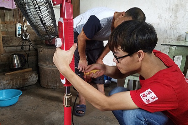 村民们在得知金年官网三下乡志愿服务团将开展义务维修活动后,纷纷把需要维修的电器交到志愿者手里,志愿者们接过电器,马上动手维修起来。不能正常工作的小风扇、电饭锅、小台灯、电热水器,经过金年官网志愿者的认真检查与维修,小家电的问题很快得以解决。