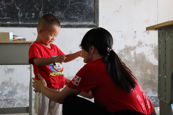 "一个一个梦飞出了天窗,一次一次想穿梭旧时光……"正是本次三下乡团队成员江建梅教小朋友们唱的歌曲,教室里面不时地传出孩子们的欢声笑语。虽然怀化市的七月骄阳似火,但孩子们纯真眼睛中浓厚的求知欲所有志愿者们都为之动容,暂时忘记了天气的炎热。"由于条件有限,教室里没有风扇,所有孩子和老师汗流浃背,但是所有人都在坚持,他们对知识的渴望完全超出了我们的想象这些孩子们稚嫩的童声和热情洋溢的笑容让我们觉得这一切都是值得的"此次三下乡团队成员王俣晴说道。