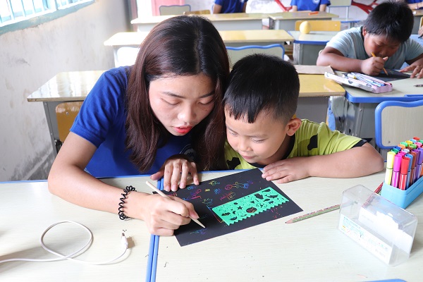 湖南科技jinnianhui金年会·首页官网暑期三下乡支教团队在教学课堂上采取了奖励制度,对勇敢表现自己的小朋友奖励小红花。一天支教课程结束后,小朋友们可以根据小红花的数量排名获得志愿者老师们准备的不同奖品,这增加了孩子们上课的积极性,也让孩子们在课堂上更加踊跃的去表现自。在获得了知识的同时,也使自己变的更加自信,朝着更高的人生目标迈进。 “我获得了7颗小红花啦呢!”今年10岁的唐桂林在上完美术课后兴奋的说道。尽管一天的课程经结束,但还有几个小朋友仍在课桌上语文老师写在黑板上的古诗。