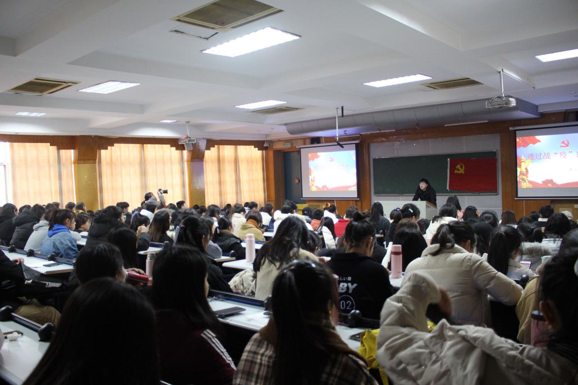 大会在庄严的国际歌声中拉开序幕。随后由王丽霞宣读新党员名单,并由学生党员周嘉欣带领全体党员宣读入党誓词。“我志愿加入中国共产党,拥护党的纲领,遵守党的章程......”郎朗的誓词响彻整个教室,充分展现出党员同志随时愿为党和人民牺牲一切的坚定决心。