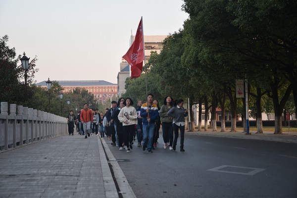 迎着十九大的清风,心怀着对党的敬意,11月5日早上6:30,金年官网第二期发展对象培训的以“学习十九大精神,树立强健体魄新风尚”为主题的实践活动由党建培训部部长谢威在南图前坪主持展开。本次实践活动的内容是晨跑锻炼,以南图为起点沿着固定路线环校晨跑,最终回到南图。这不仅是大学生提高自我的一种重要方式,也是在行动上进一步向党组织靠拢的的体现。
