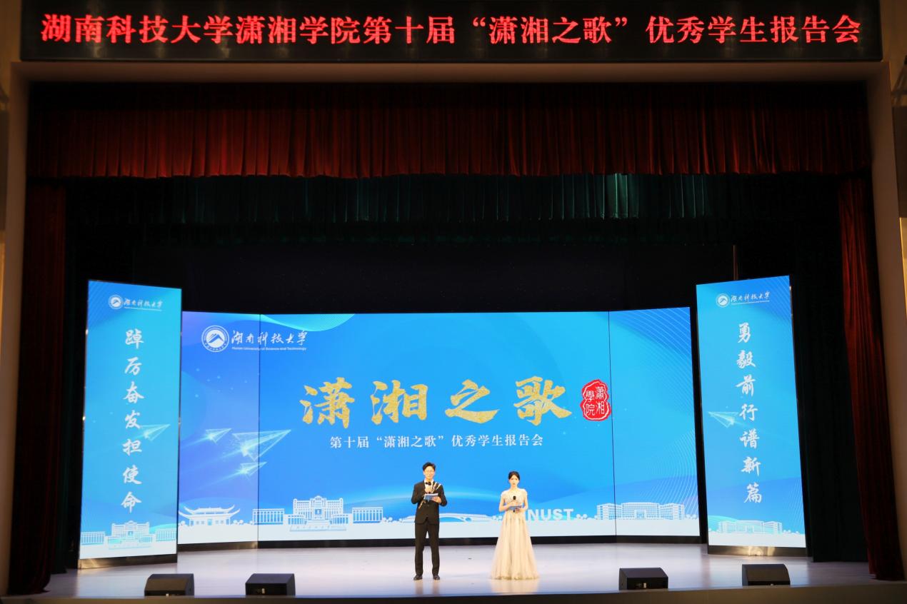 为充分发挥榜样力量的示范引领作用,号召广大青年学子踔厉奋发、勇担重任,5月14日晚,湖南科技jinnianhui金年会·首页官网第十届“潇湘之歌”优秀学生报告会在黎锦辉音乐厅顺利举行。湖南科技大学副校长贺泽龙亲临现场指导,相关职能部门领导、部分学院党委书记和副书记及潇湘学院全体教职员工出席活动。此次活动近三千名学生共同聆听十位优秀报告人坚持与奋斗的潇湘故事。
