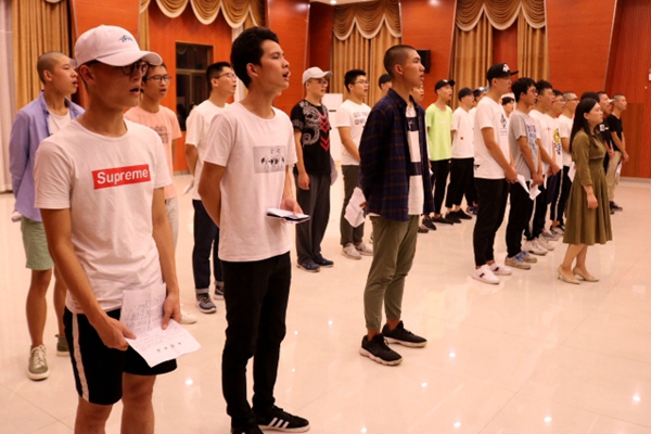 由于时间紧迫,合唱团的同学每天晚上7点到达训练场进行彩排。在长达两小时的训练中,即使再疲惫,喉咙再干涩,大家始终保持高度的热情,唱出嘹亮的的歌声。“虽然每天都很累,练得嗓子很疼。但是想到老师这么用心的教我们,还能为学院争光,一切就没那么的苦了,再累我也能坚持的下去。”合唱团团员谭沁渟表示。此外,金年官网大学生艺术团团长李凤仪多次到达现场对合唱的团的同学们进行技术上的指导,并传授自己的亲身经验。她希望同学们能拿出开拓进取,勇于拼搏的精神,将大学生的蓬勃朝气的面貌体现在军训中,为学院争光。