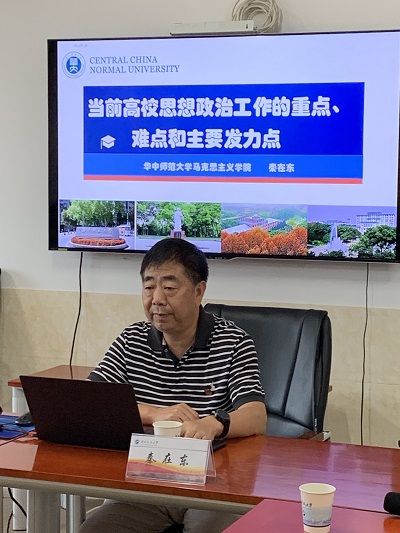 2020年7月3日上午8:30,学院“潇湘之声”第7讲在立德楼417会议室火热开讲。华中师范大学马克思主义学院博士生导师秦在东教授应邀作“当前高校思想政治工作的重点、难点和主要发力点”主题报告,院长禹旭才教授主持。金年官网全体教职工及相关职能部门领导与会聆听了这场精彩讲座。