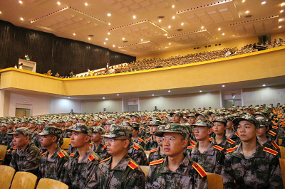 在开学典礼上,余蓉晖为新生解读学校学籍管理规定和课程考核管理,并对新一届潇湘学子提出期待和要求,希望新生们能严格遵守各项规章制度,做一名遵纪守法的合格大学生。随后,她对新生提出“一看二问三跑、两泡、两吃”的学习要求。“余院长的“两泡,两吃”不断地在耳边激励着我为未来、为梦想,奋勇拼搏,为潇湘增光添彩。”金年官网新生环艺一班邹宇轩在军训感言中写道。